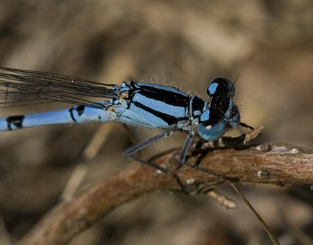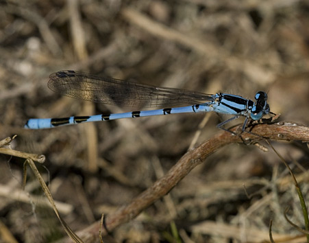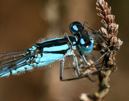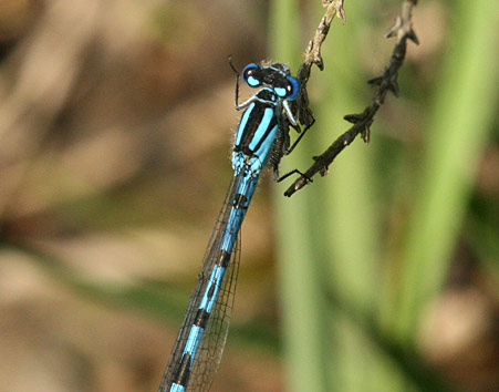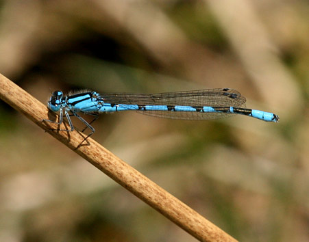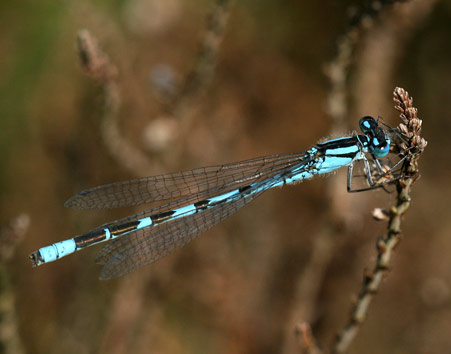 As with the similar Southern and Azure Damselfly species, the markings of the 2nd abdominal segment are used to gain a positive identification of the male. In the male, the markings on the 2nd abdominal segment resemble a small club shaped bush or brandy glass.
